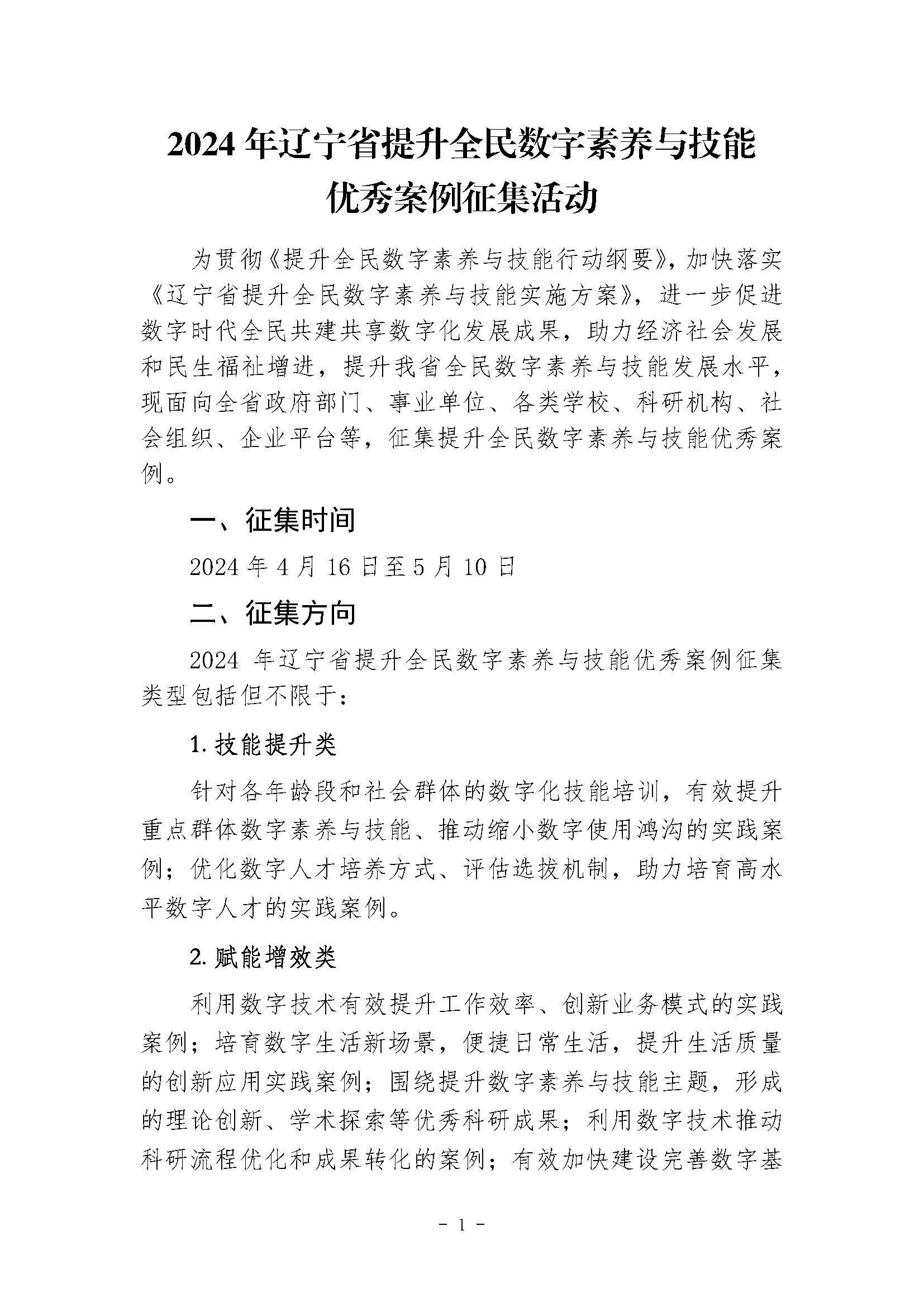 2024年辽宁省提升全民数字素养与技能优秀案例征集活动