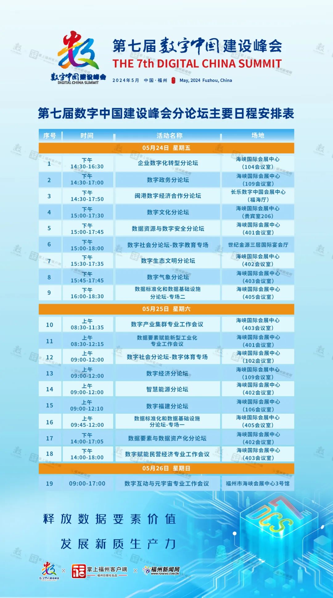 5月24日至26日,第七届数字中国建设峰会分论坛将在福建省福州市举行。