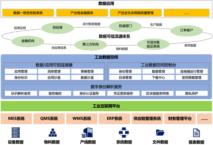 电子信息行业产业链条长、供应商多,一旦某个环节出现延迟供货或断供,将影响上下游企业的生产和现金流,甚至影响企业群体的生存。同时,很多上下游供应商属于中小微企业,普遍面临融资难、融资贵等生存挑战,成为供应链稳定的风险隐患。四川长虹电子控股集团有限公司通过建立工业数据空间,打通测试、生产、库存、应付账款、供应商资信和历史交易记录等数据,既用来破除产业链上下游企业之间的信息壁垒,又用来助力中小微供应商提升授信,促进产业链供应链高质量协同发展(如图1所示)。