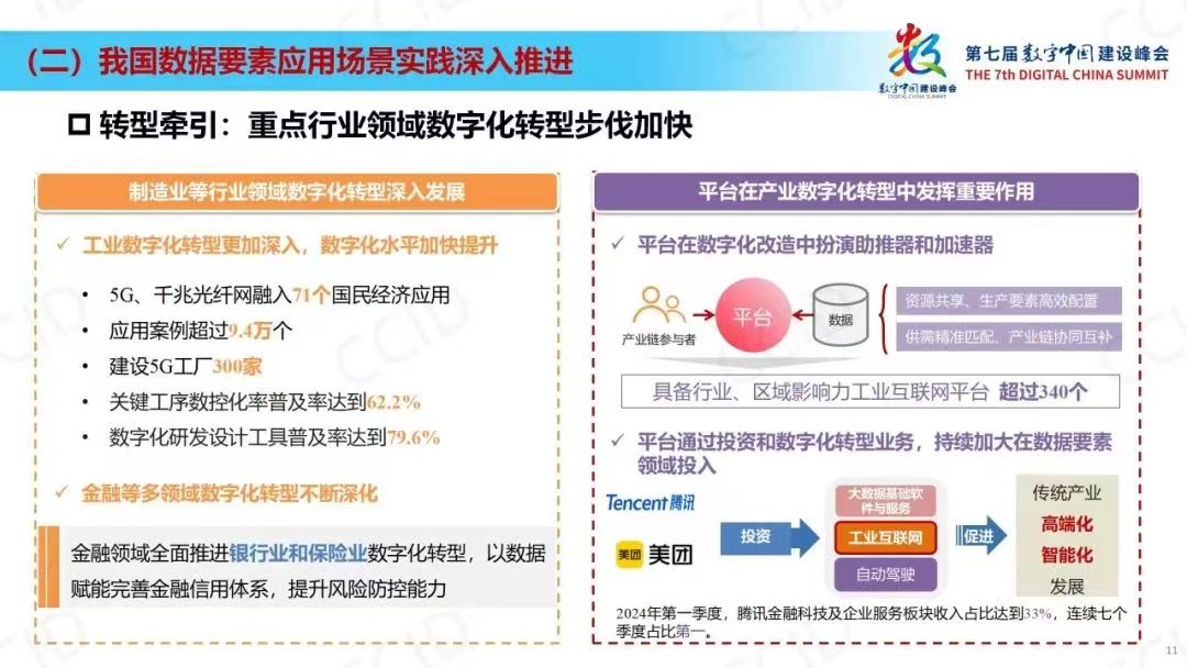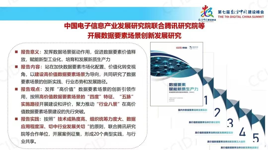 近日,中国电子信息产业发展研究院联合腾讯研究院,在清华中国电子数据治理工程研究院、中国电子数据产业集团、北京国际大数据交易所、中国计算机行业协会大数据产业生态专委会等单位的参与支持下,在第七届数字中国建设峰会数据要素赋能新型工业化专业工作会上发布《数据要素赋能新质生产力--数据要素场景创新发展报告(2024)》(以下简称《报告》),站在加快数据要素市场化配置、价值化转变视角,以建设“高价值”数据要素场景为导向,研究了数据要素场景的创新实践、行业态势和发展路径,以期为释放数据要素价值、赋能新型工业化、培育和发展新质生产力探索现实路径。
