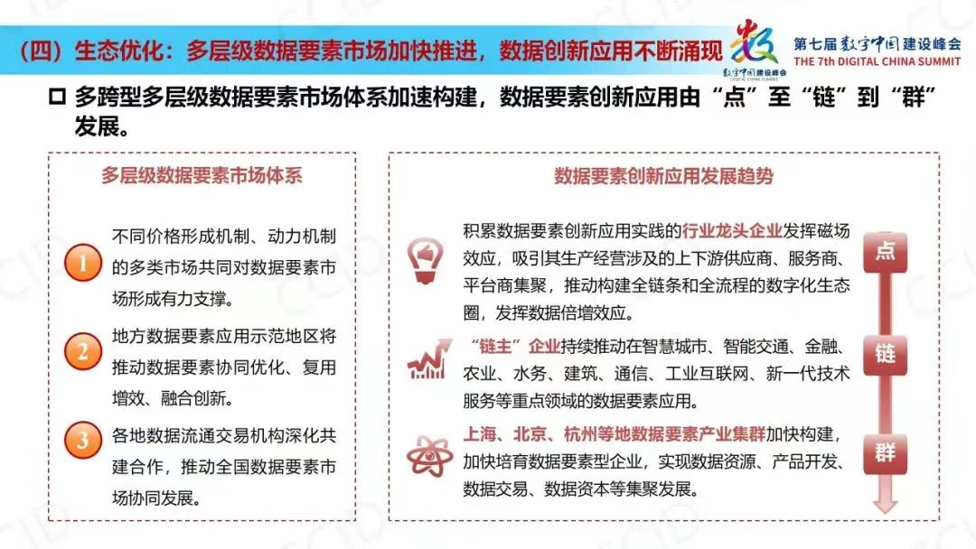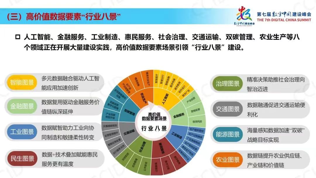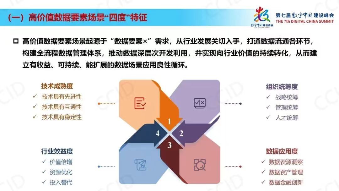 《报告》提出,要发挥“高价值”数据要素场景的创新引领作用,按照高价值数据要素场景在技术成熟度、组织统筹度、数据应用度、行业效益度等方面的“四度”特征开展评价,沿袭摸清“需求脉”、推进协同“研发脉”、变革数据“制度脉”、优化组织“流程脉”、迭代场景“系统脉”的“五脉”路径开展建设,聚力推动“行业八景”在高价值数据要素场景建设的先行突破。